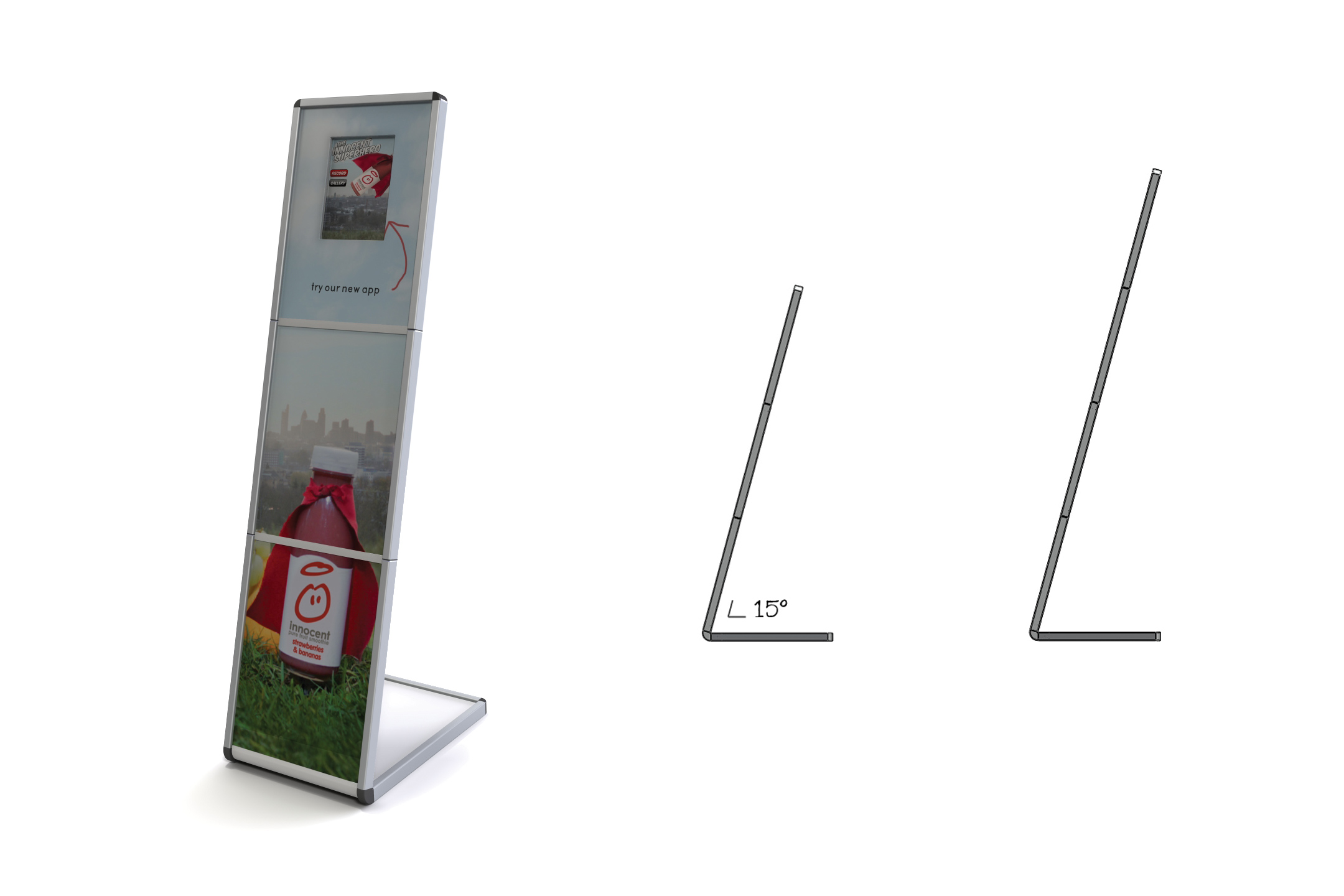 Dankzij deze duurzame tabletstandaard kan op beurzen en tijdens presentaties uw eigen tablet gebruikt worden voor promotiedoeleinden. De standaard is eenvoudig te transporteren en te plaatsen door het lichtgewicht ontwerp dat eenvoudig in- en uitklapbaar is. Daarnaast biedt de standaard veel ruimte voor branding. De tablethouder is geschikt voor de meeste tablets, waaronder de iPad van Apple en Galaxy Tab van Samsung. Aangezien dit type product vaak vroegtijdig wordt afgedankt, bijvoorbeeld aan het einde van een beurs, is er gekozen voor volledig recyclebare materialen.